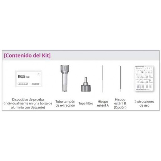 La prueba rápida de antígeno de SARS-CoV-2 SD BIOSENSOR STANDARD Q COVID-19 Ag test es un inmunoensayo cromatográfico rápido para la detección cualitativa de antígenos específicos para COVID-19. Esta prueba es para uso diagnóstico profesional in vitro y pretende ser una ayuda para el diagnóstico temprano de la infección por COVID-19 en pacientes con síntomas clínicos con infección por COVID-19.