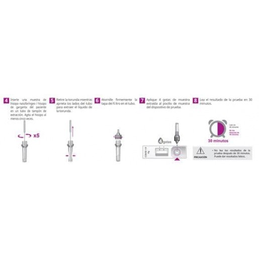 Con uso previsto para la detección cualitativa del antígeno SARS-CoV-2 a partir de muestra, tomada con torunda, de exudado nasofaríngeo con resultados en un plazo máximo de 30 minutos con elevados niveles de sensibilidad y especificidad.